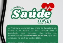 A Prefeitura Municipal, por meio da Secretaria de Saúde e da equipe do PSF, convida toda a população para participar das ações...